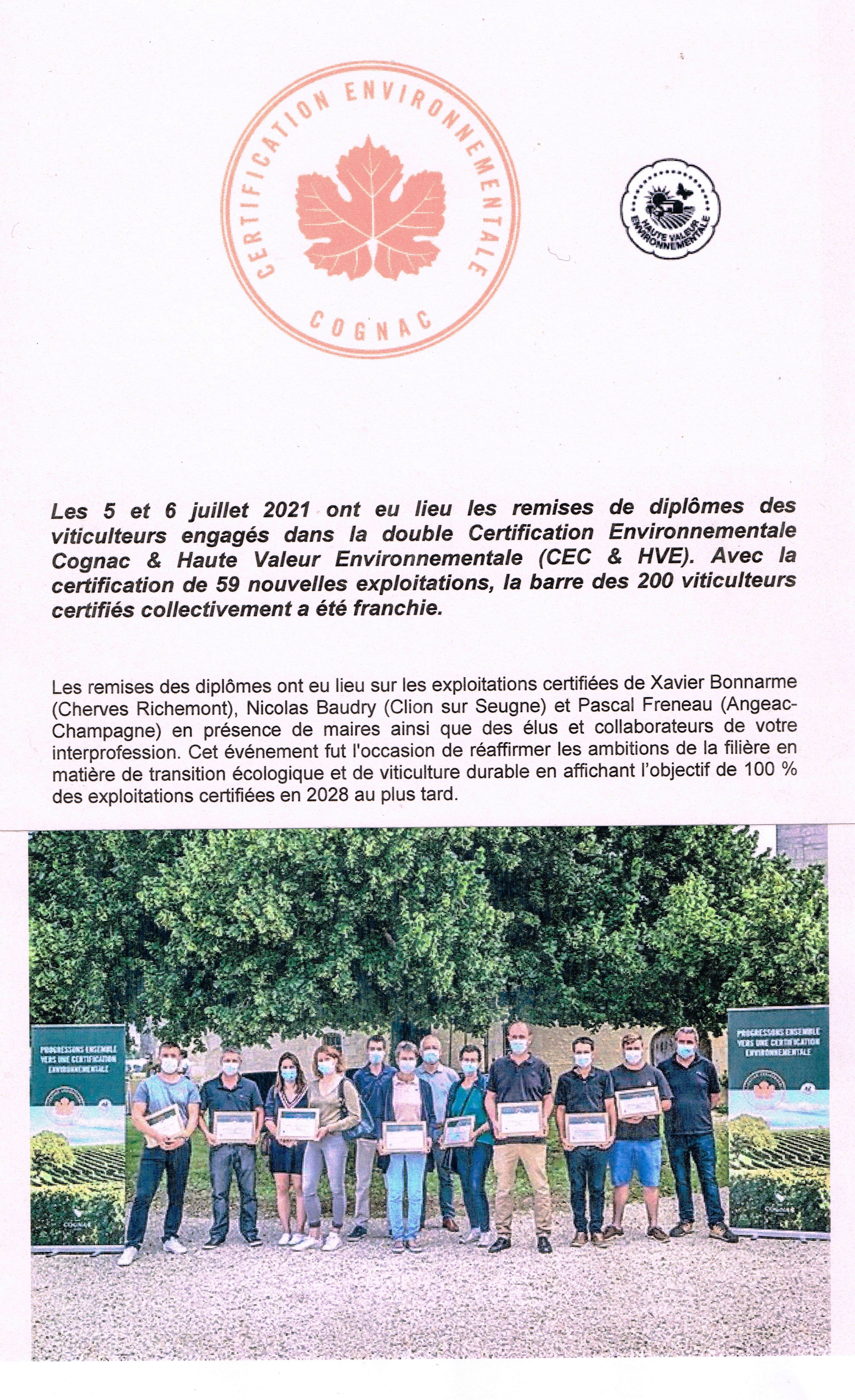 Prenant le relais de Christian, Nicolas, son fils, exploite les domaines familiaux de Saint-Hilaire de Villefranche et de Clion-sur-Seugne regroupés dans le Groupement Foncier Agricole Baudry-Camus.